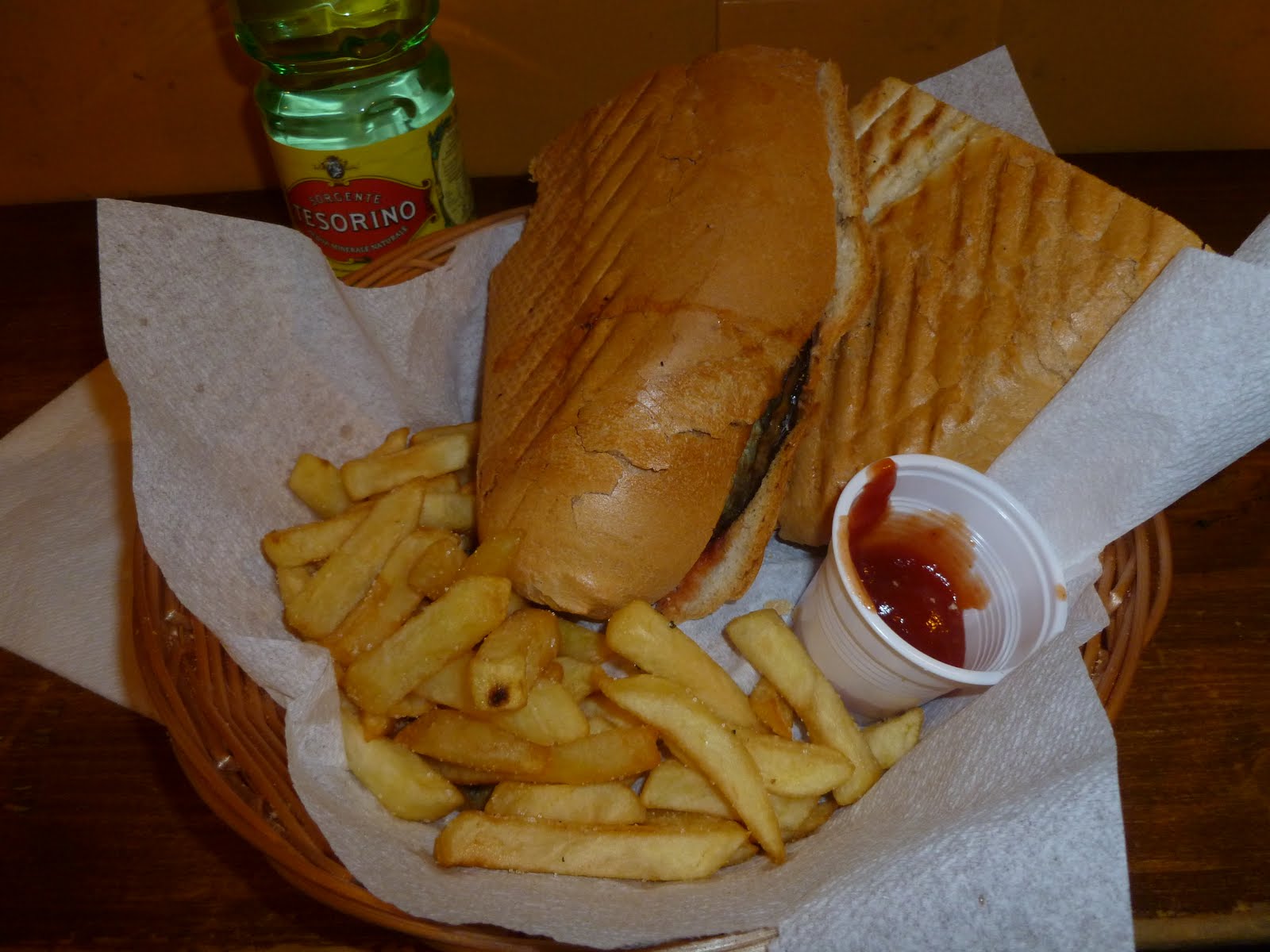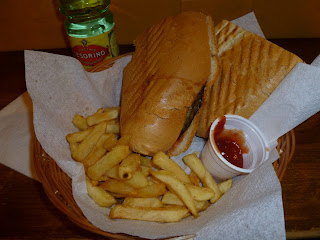 While Florence is known for its wonderful selection of art and leather goods, I toured both major art museums and spent way too much money on leather trust me, I was most surprised by the great food! I suppose when you think of Tuscany as a whole you think food and wine but it didn't always register with Florence in particular. It didn't take long for me to think of Florence as food and wine as well. I spent two nights in Florence, thats 6 meals, and I didn't have anything close to a "just ok" meal. For lunch, I experienced my first Olio, a little bar that sells sandwiches and the like. I had the luxury of sharing and got to eat half of an eggplant sandwich and half of a salami and cheese sandwich. There were different bread options as well as the option of a side of fries. I was proud to have ordered for myself and my parents entirely in Italain, and was even prouder of our food selections (see below).