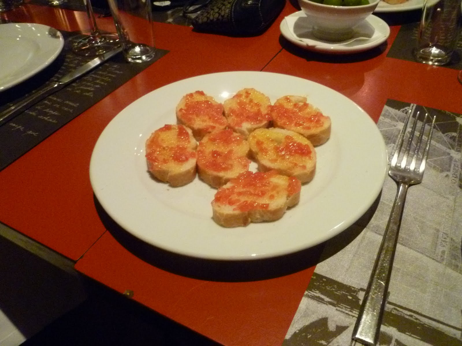 My friends ordered ravioli with brie cheese and shrimp and I ordered a sauteed prawns dish. As I ordered the waitress looked at me hesitantly saying it was a starter dish and may have less than 10 prawns. I'm not sure about you but where I come from 10 prawns is a feast. When I got my meal I found that the prawns were the size of a small shrimp, but there were still 16 for me to enjoy, clearly an entire meal. I could barely finish it in fact, but the quality of the seafood was far too good for me to leave some on my plate. I would certainly recommend this place to anyone visiting and would also recommend trying these dishes or something like them. The pan con tomate is found just about everywhere and is an essential starter or tapas choice.